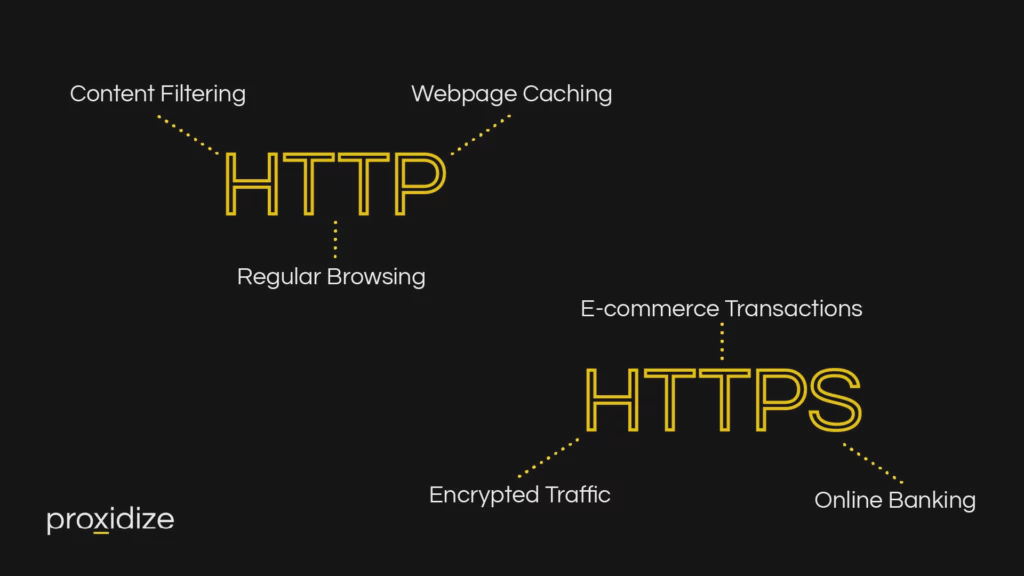 • Encryption Limitations HTTPS encrypts HTTP traffic using SSL/TLS, which means the HTTP proxy cannot inspect the contents of data without first decrypting it, processing it, then reencrypting it.