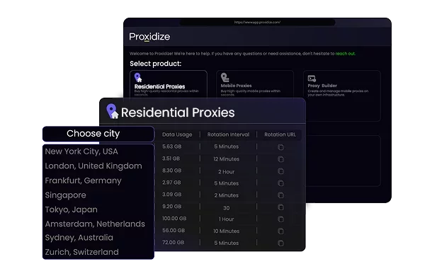 Proxidize residential proxies are designed for professionals and businesses that require high-performance IPs for tasks like web automation, data collection, quality assurance, and location-based testing. They are built to support consistent performance, scalability, and precise control.